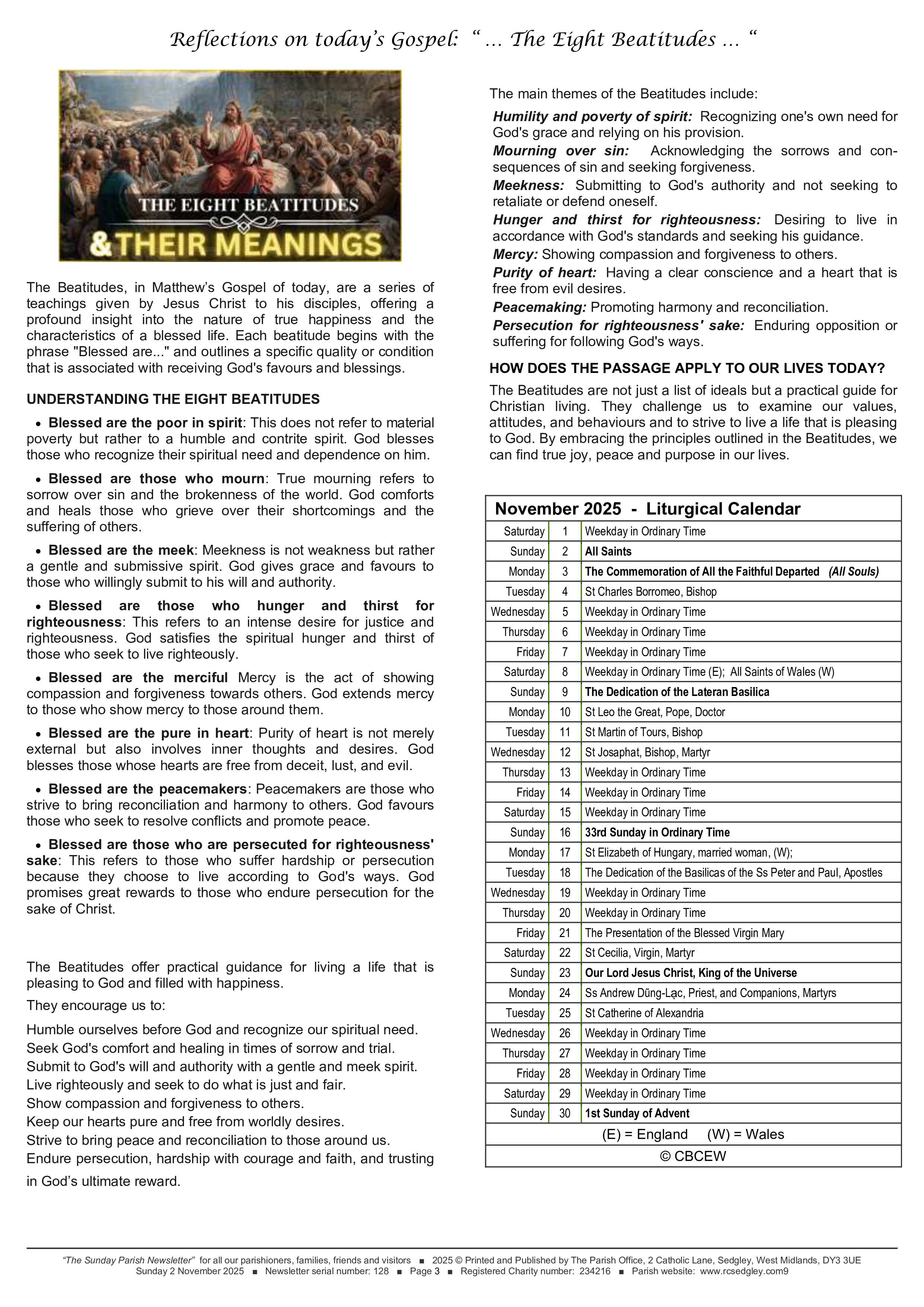 Parish Newsletter for week period Saturday 1 November to Sunday 9 November 2025