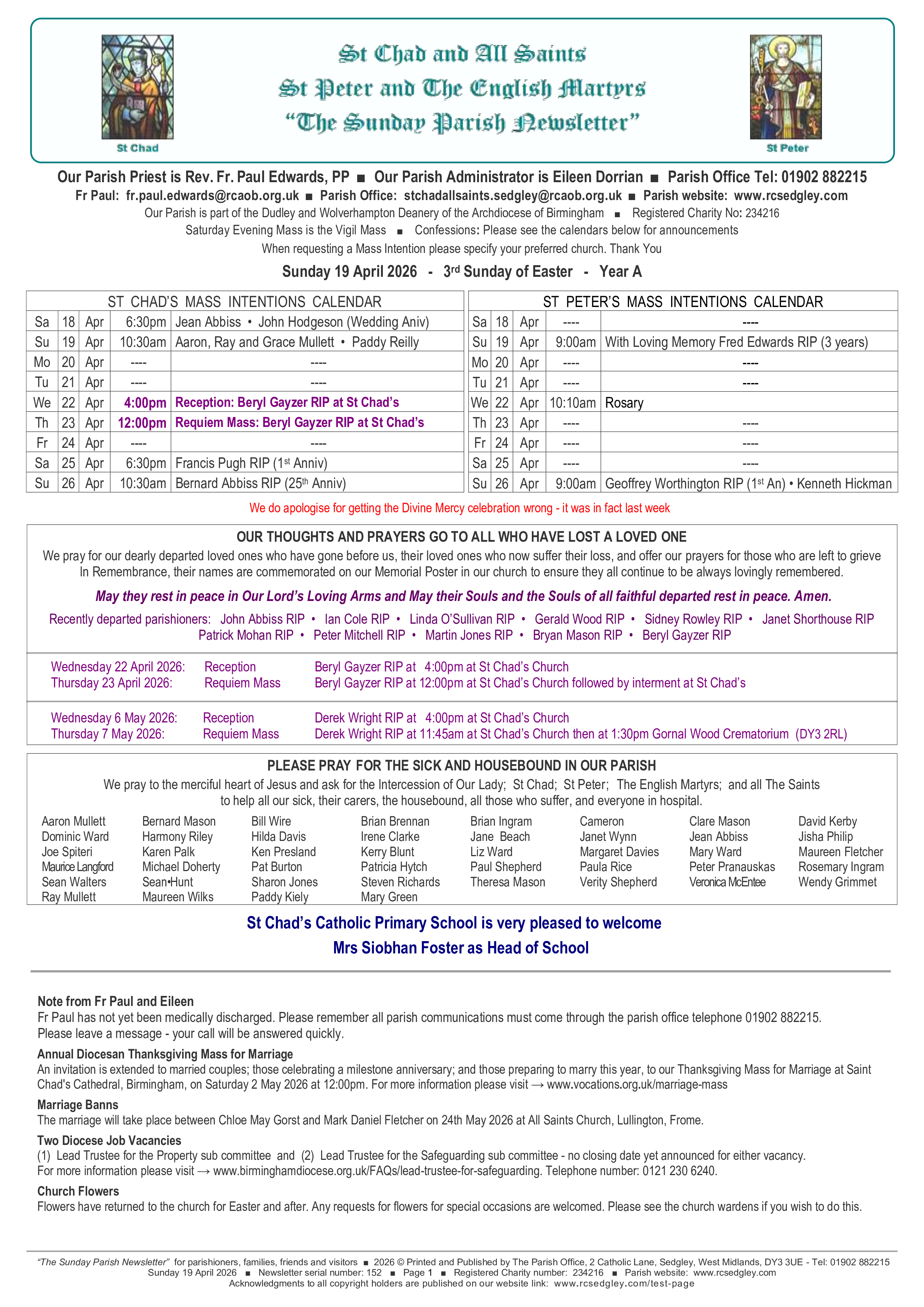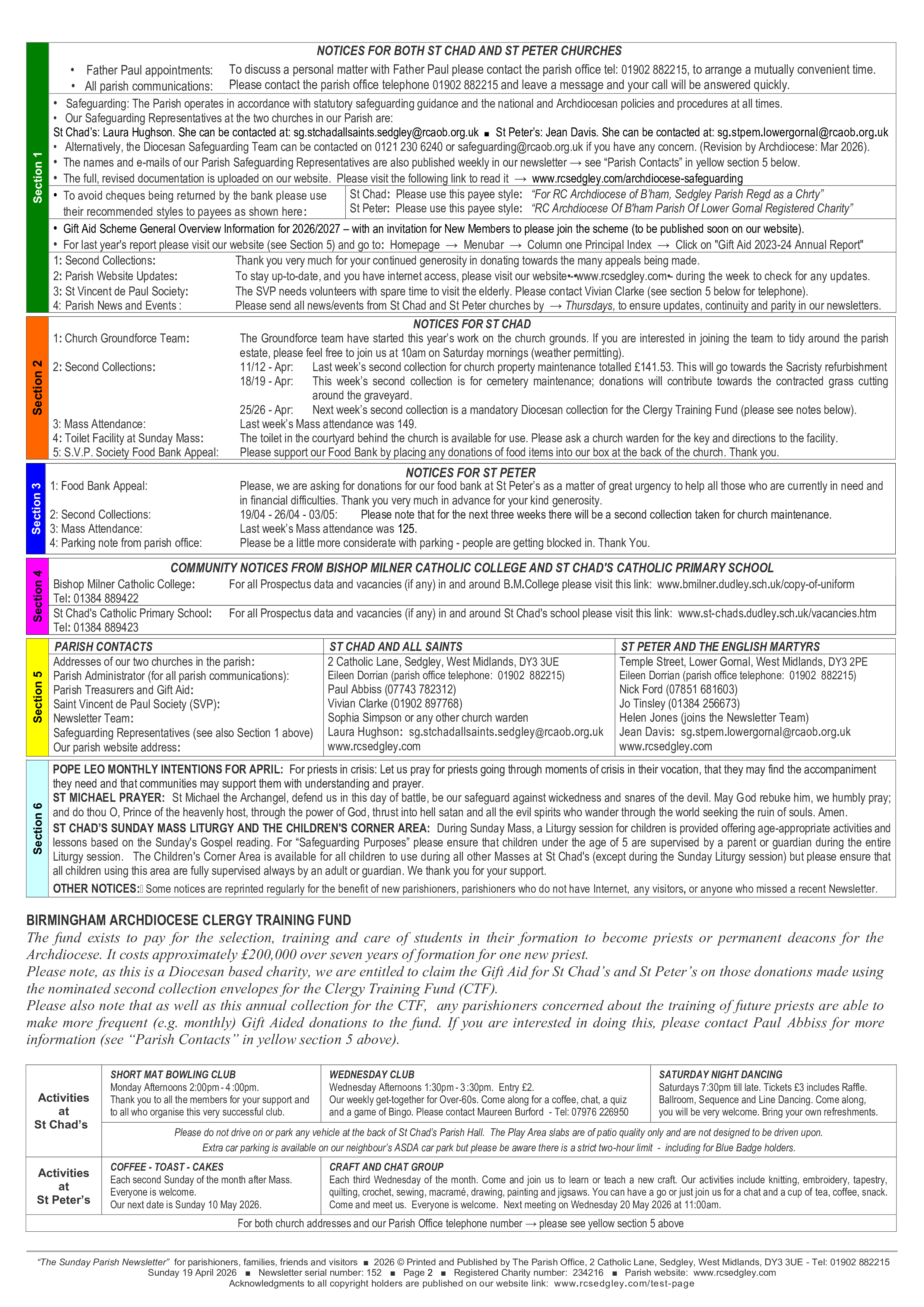• 2026 © Printed and Published by The Parish Office, 2 Catholic Lane, Sedgley, West Midlands, DY3 3UE - Telephone number: 01920 882215