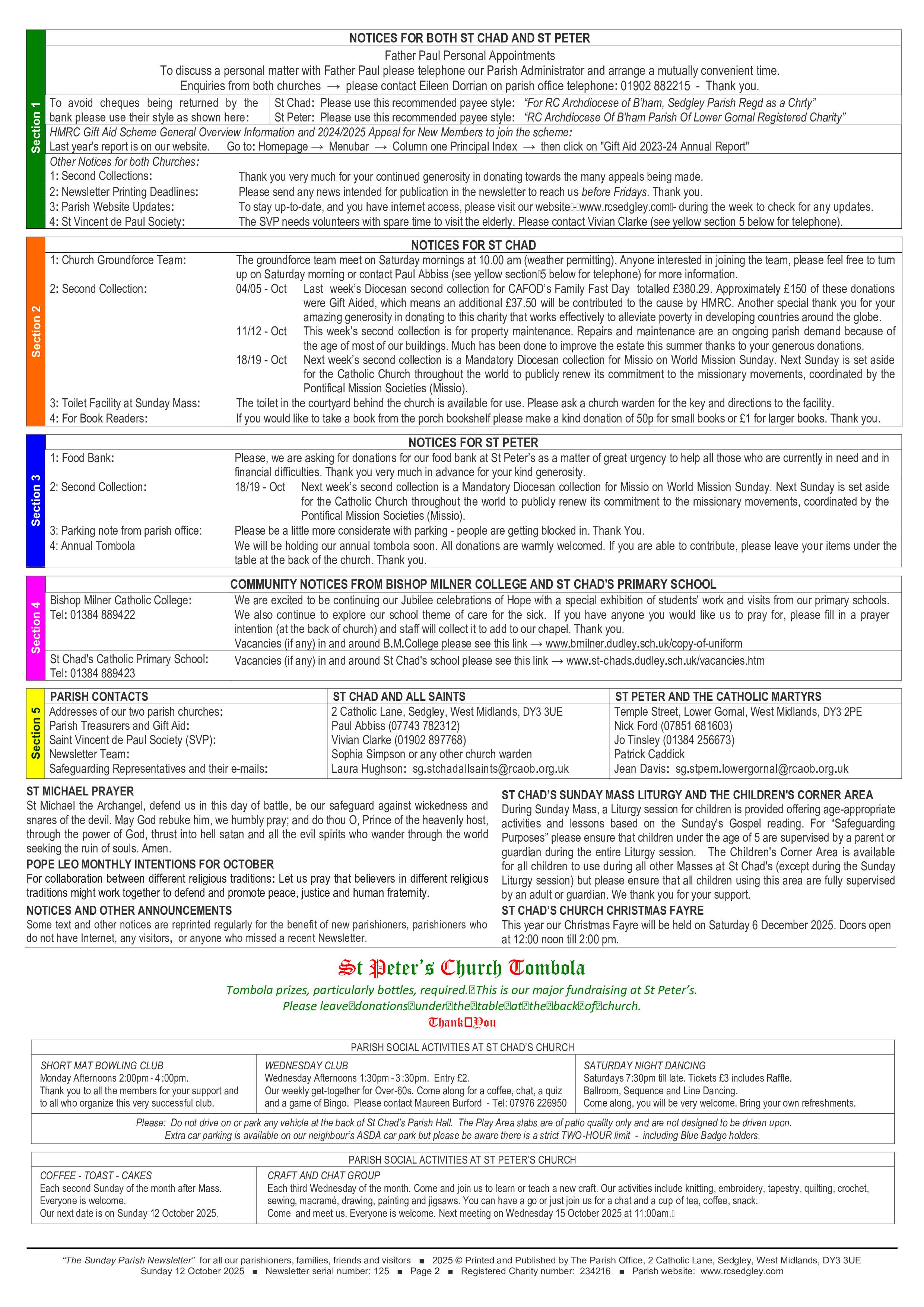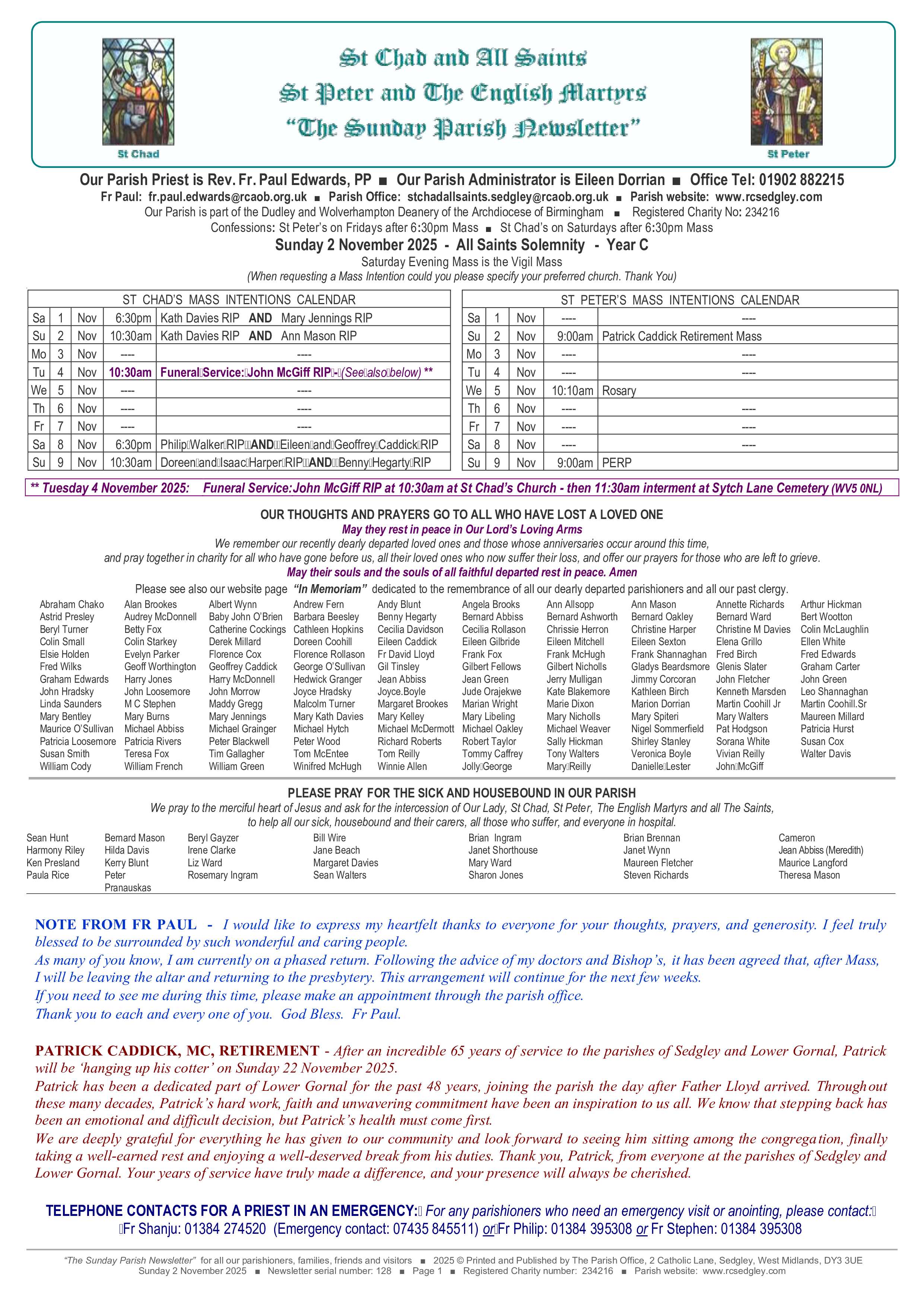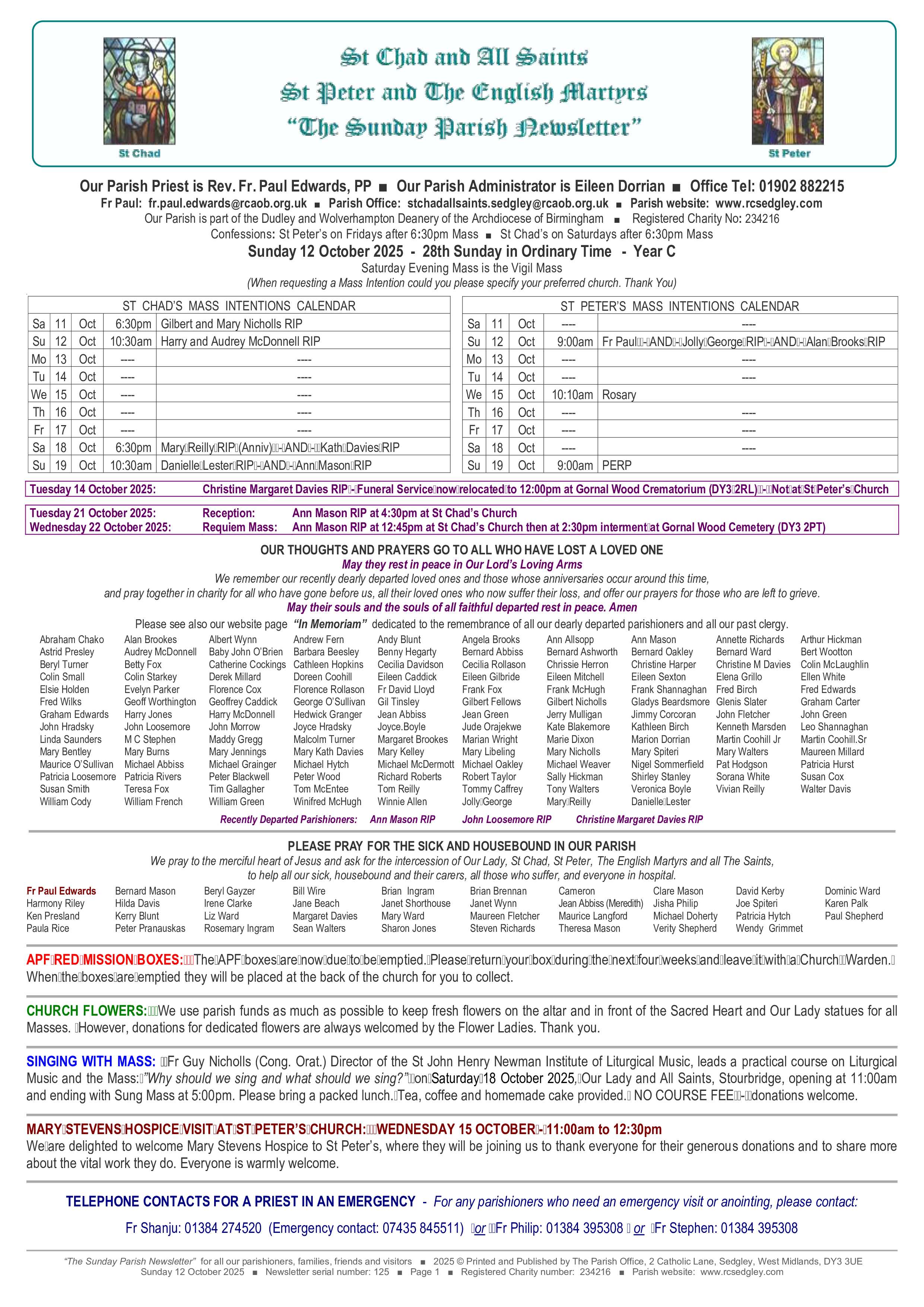 - 2025 © Printed and Published by The Parish Office, 2 Catholic Lane, Sedgley, West Midlands, DY3 3UE