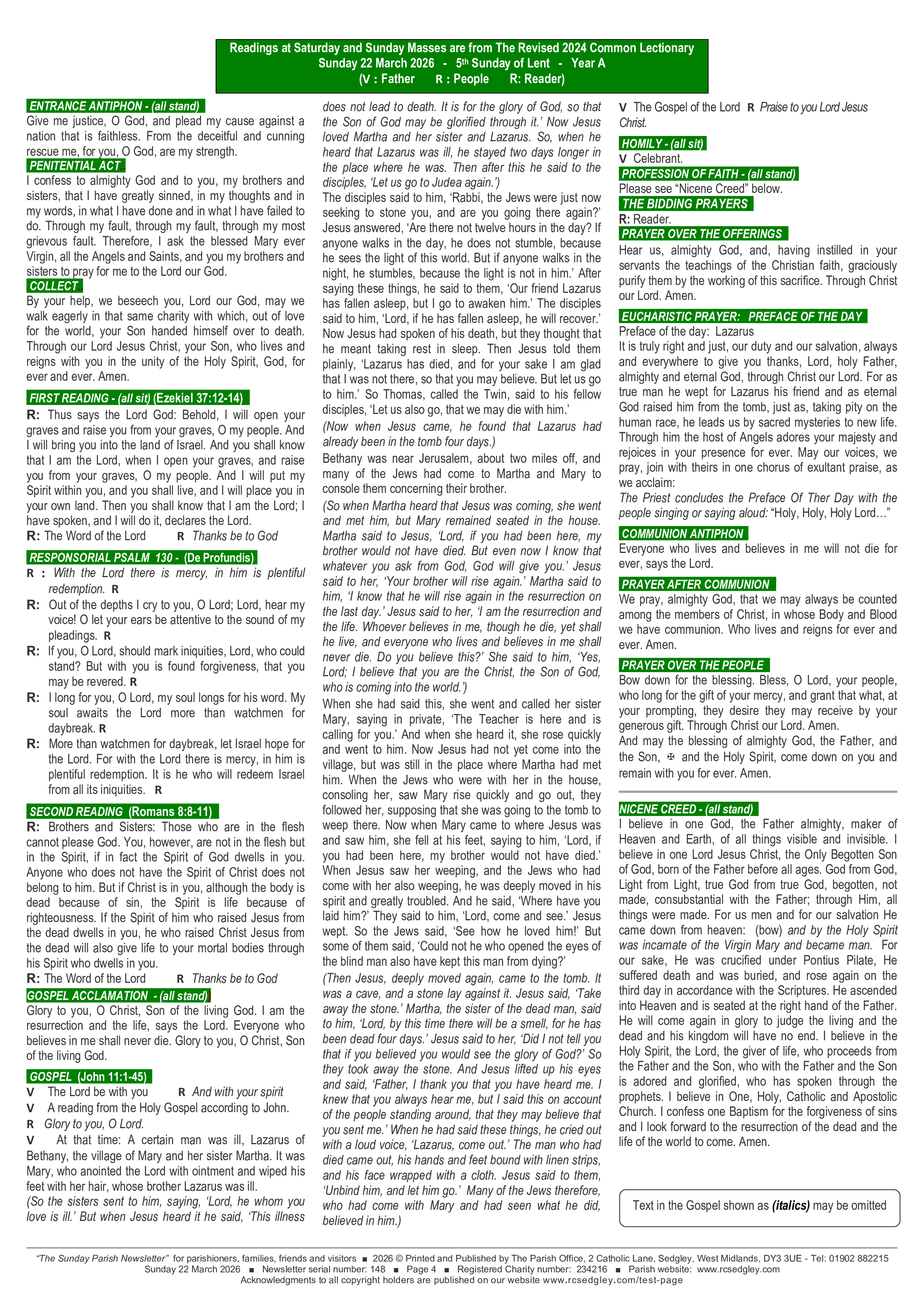 (3) Our newsletter is printed on double-sided sheets and includes the Readings and Responses for all Vigil and other Masses for this weekend.