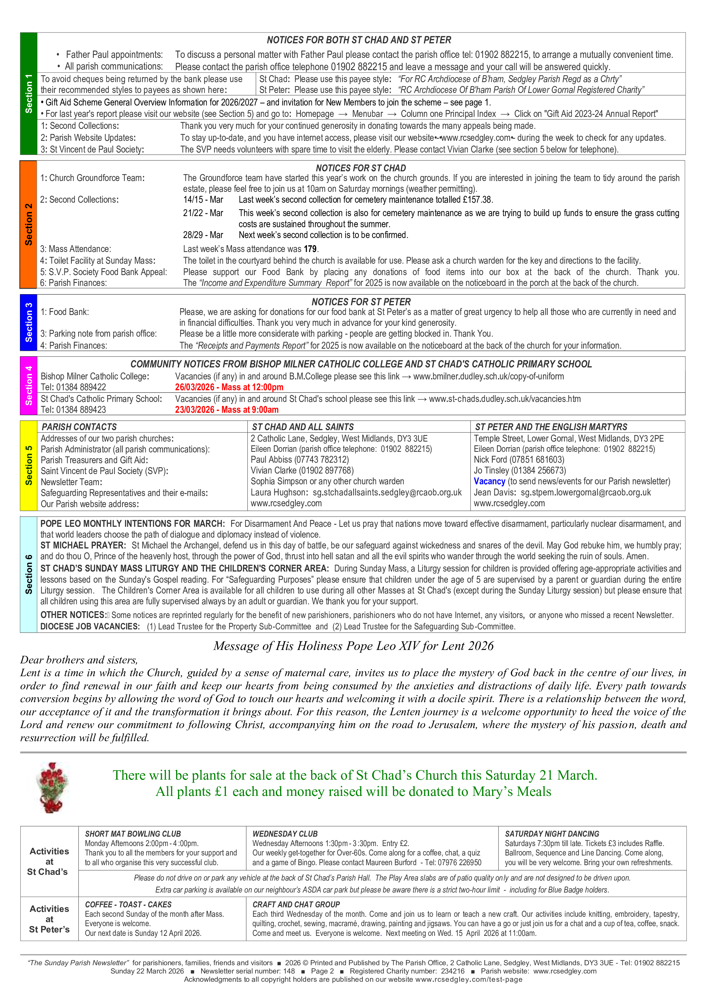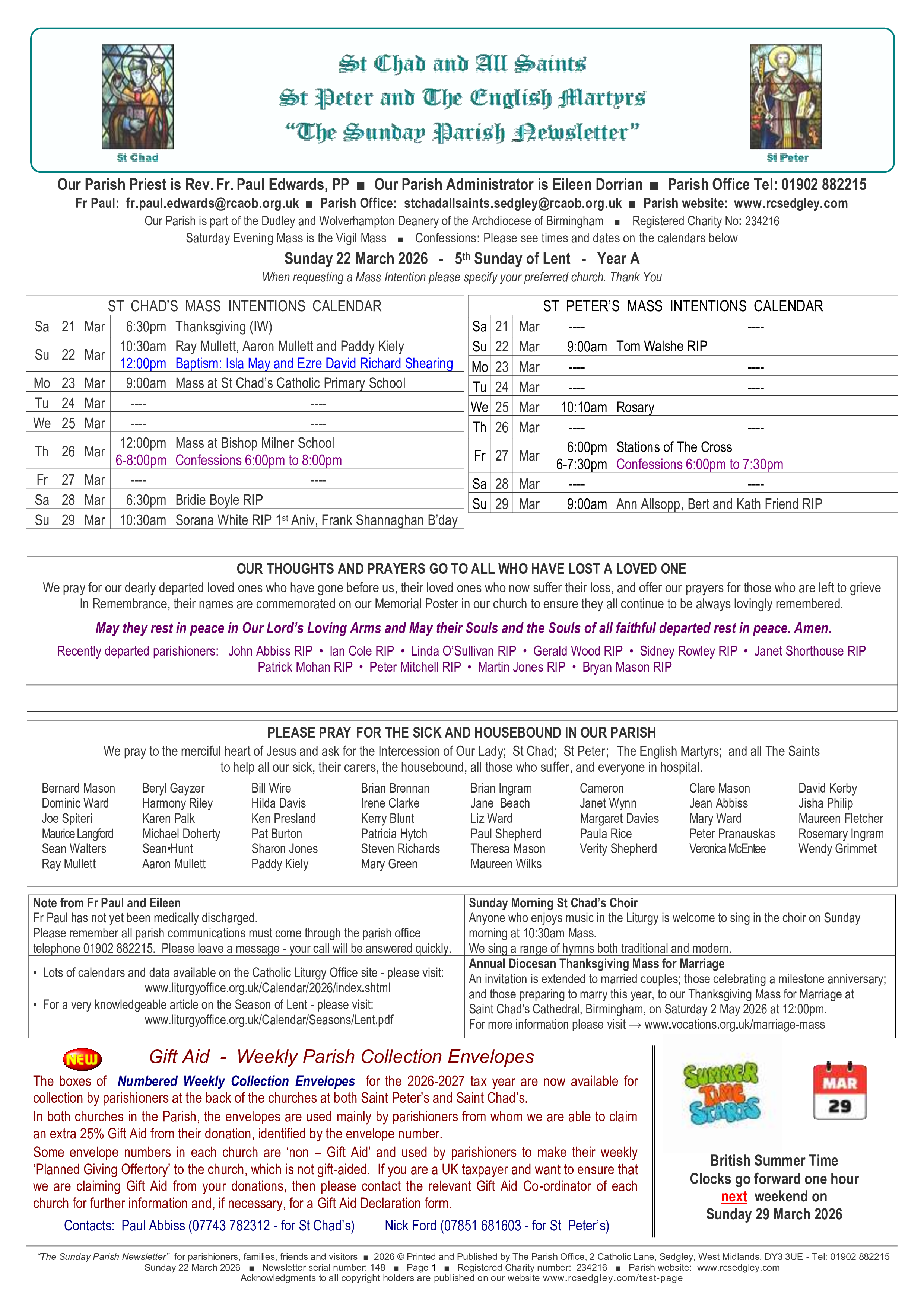• 2026 © Printed and Published by The Parish Office, 2 Catholic Lane, Sedgley, West Midlands, DY3 3UE - Telephone number: 01920 882215